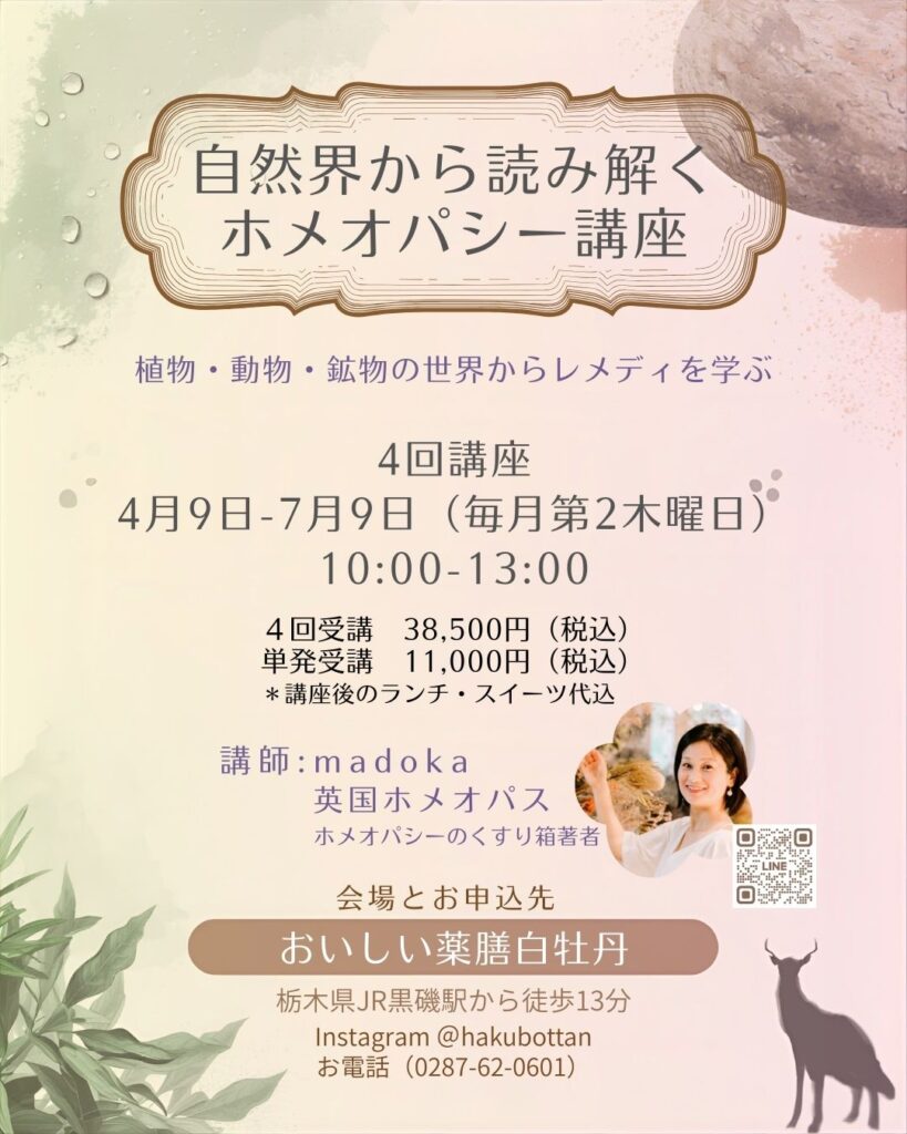 そんな新しい視点からホメオパシーを学ぶ講座が始まります。